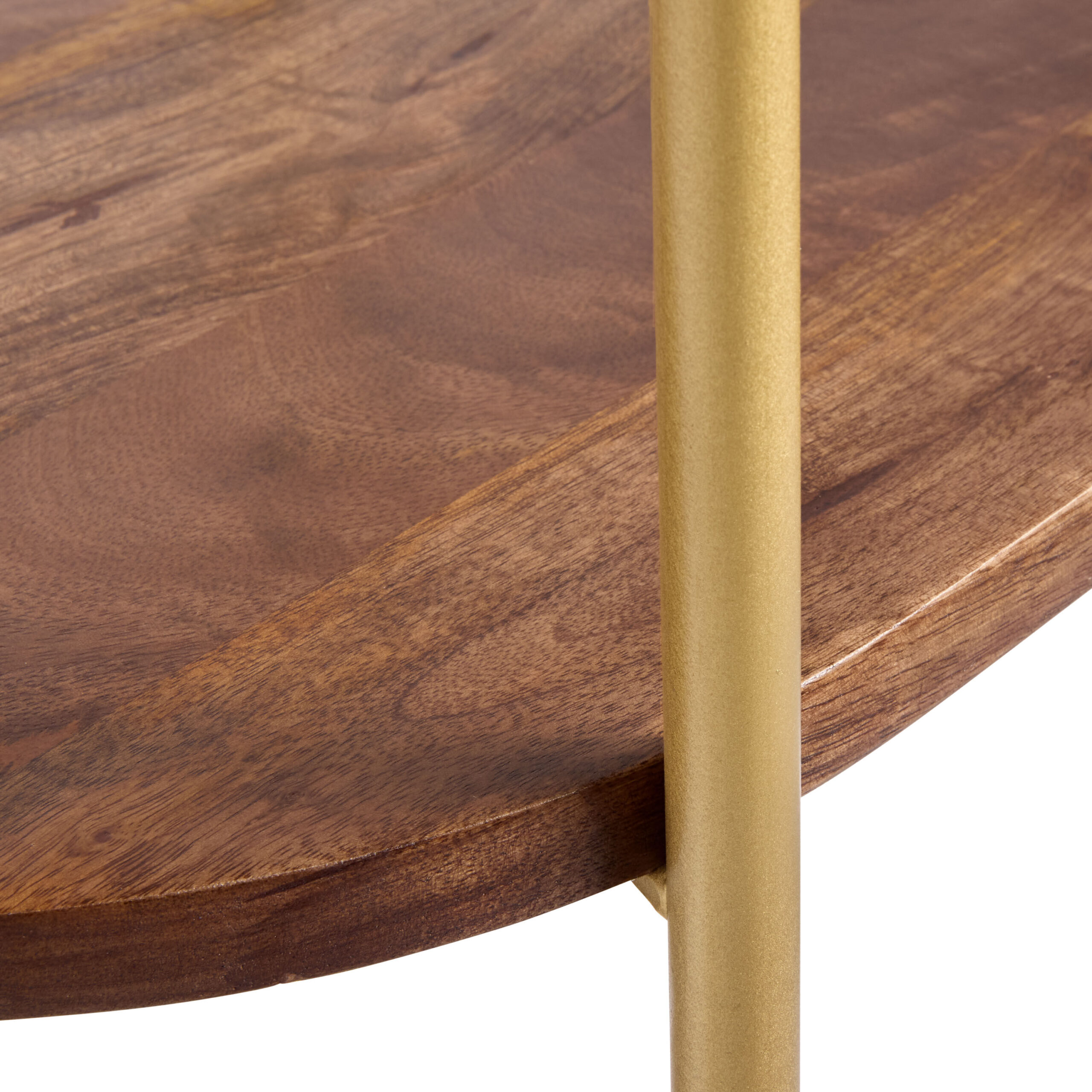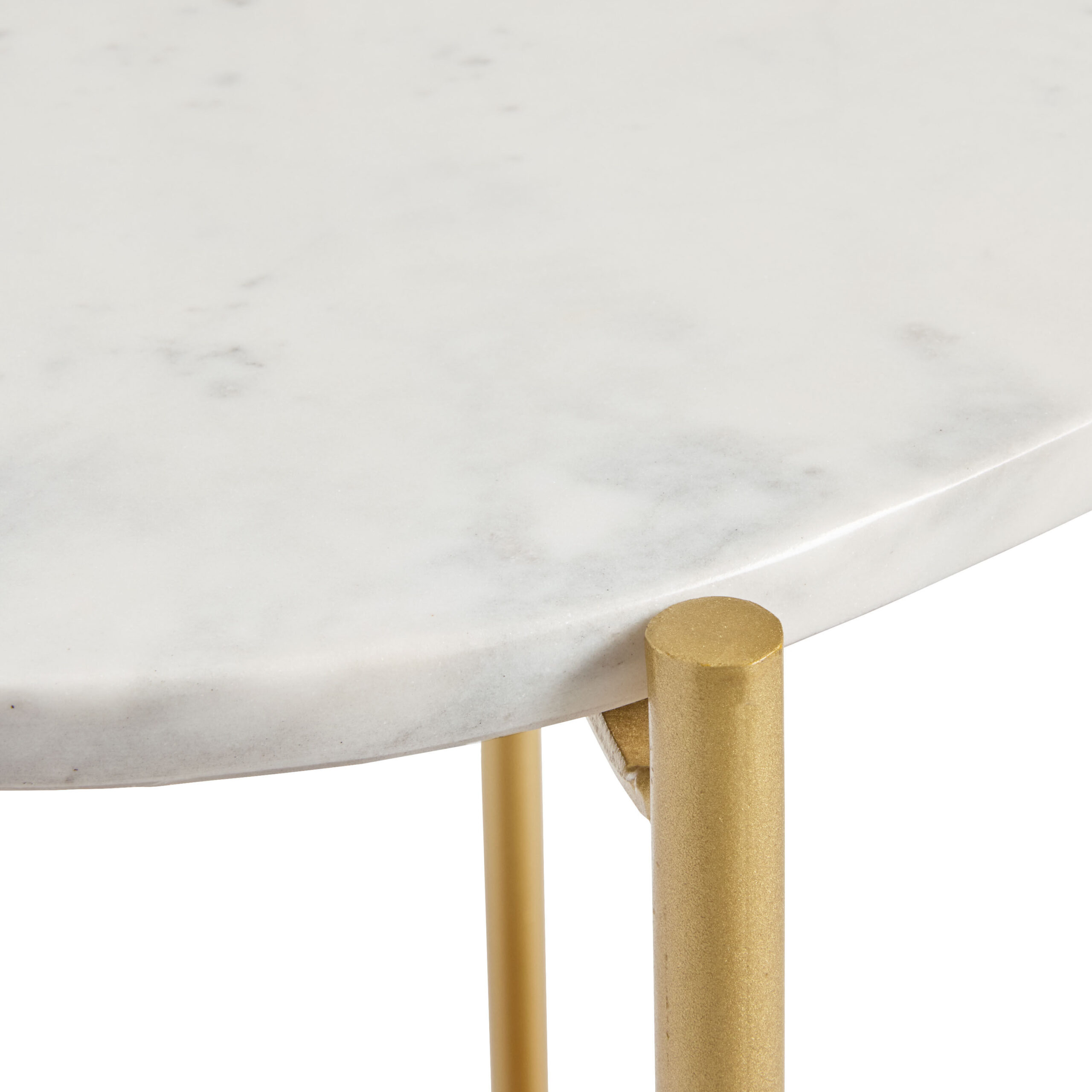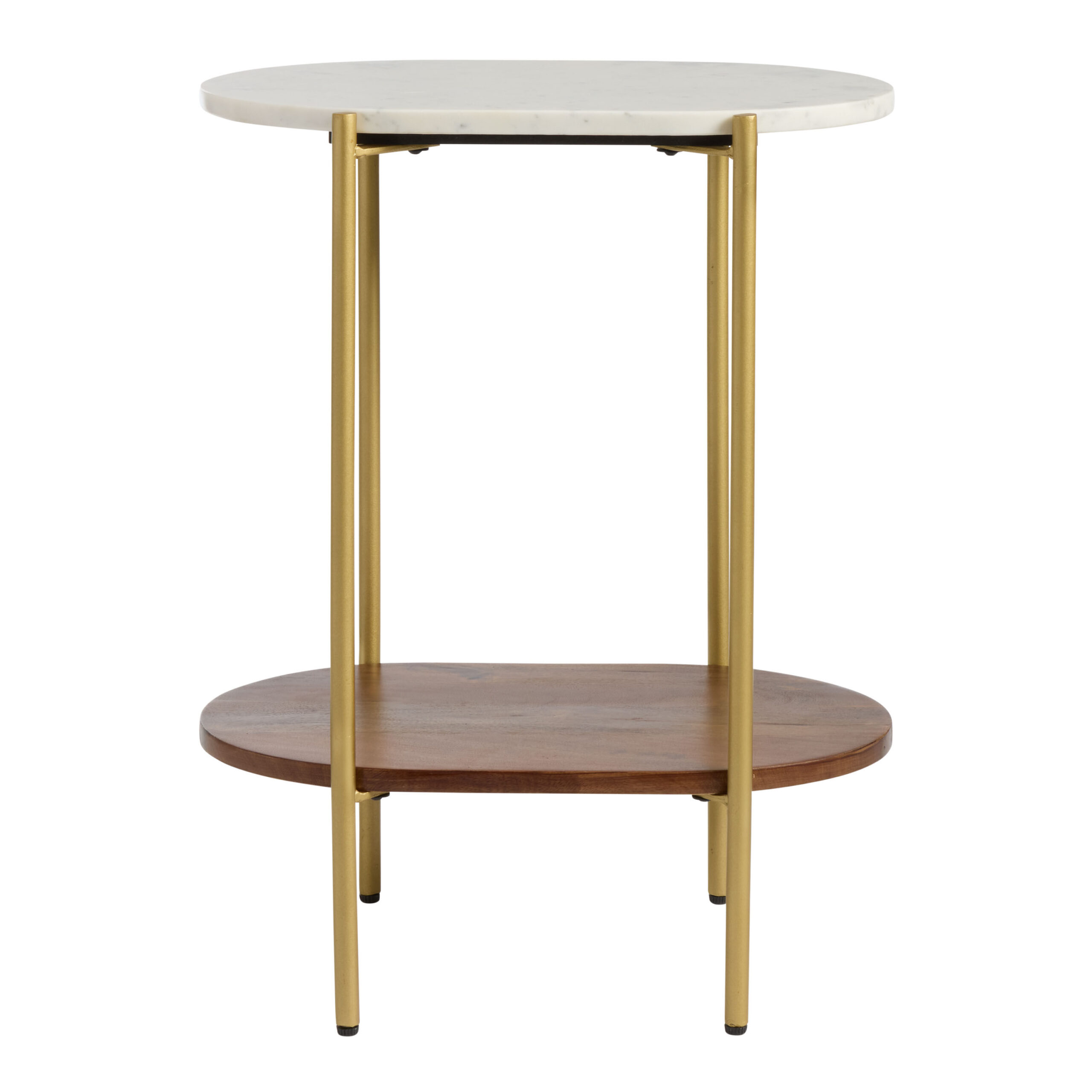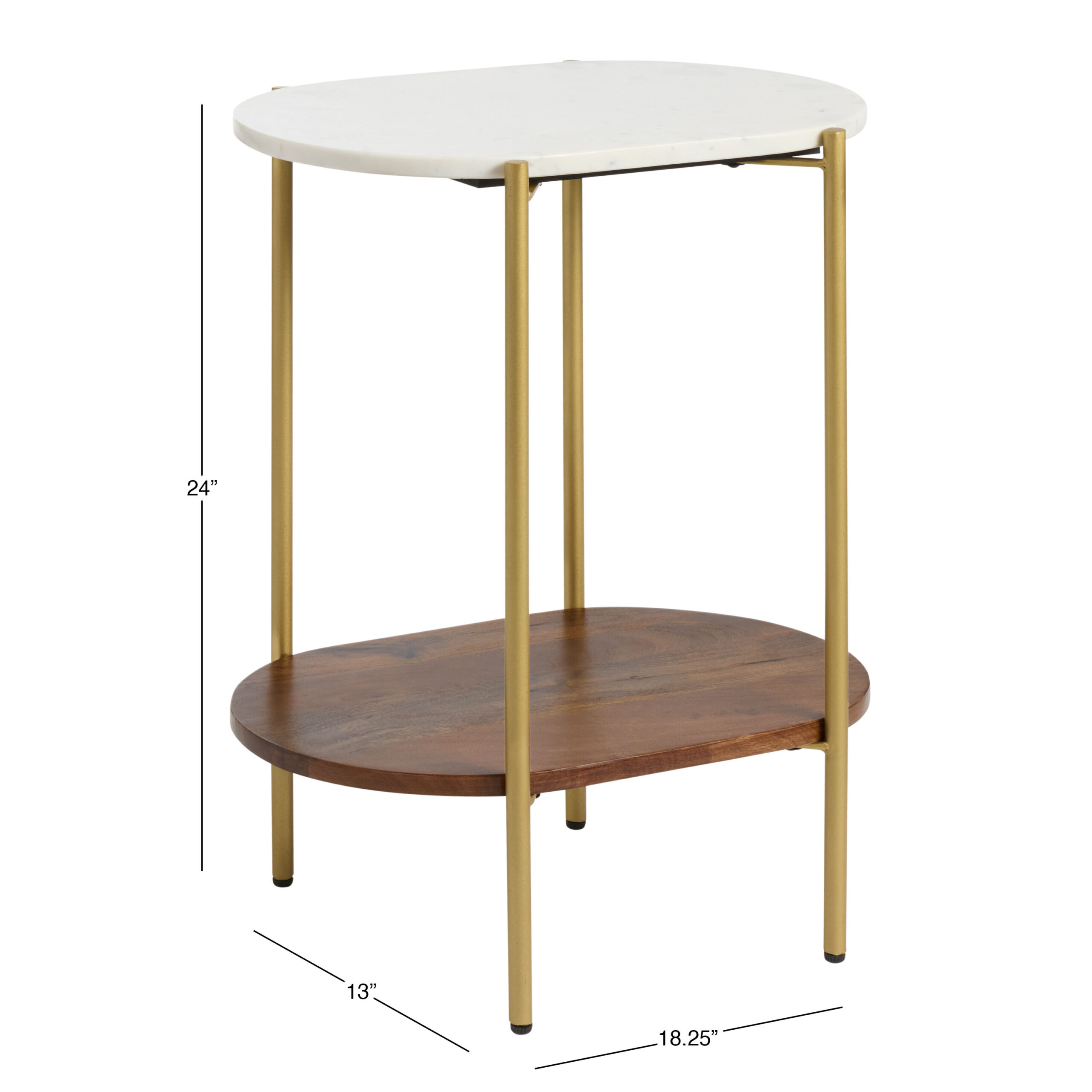 Reggio Oval White Marble and Wood End Table with Shelf