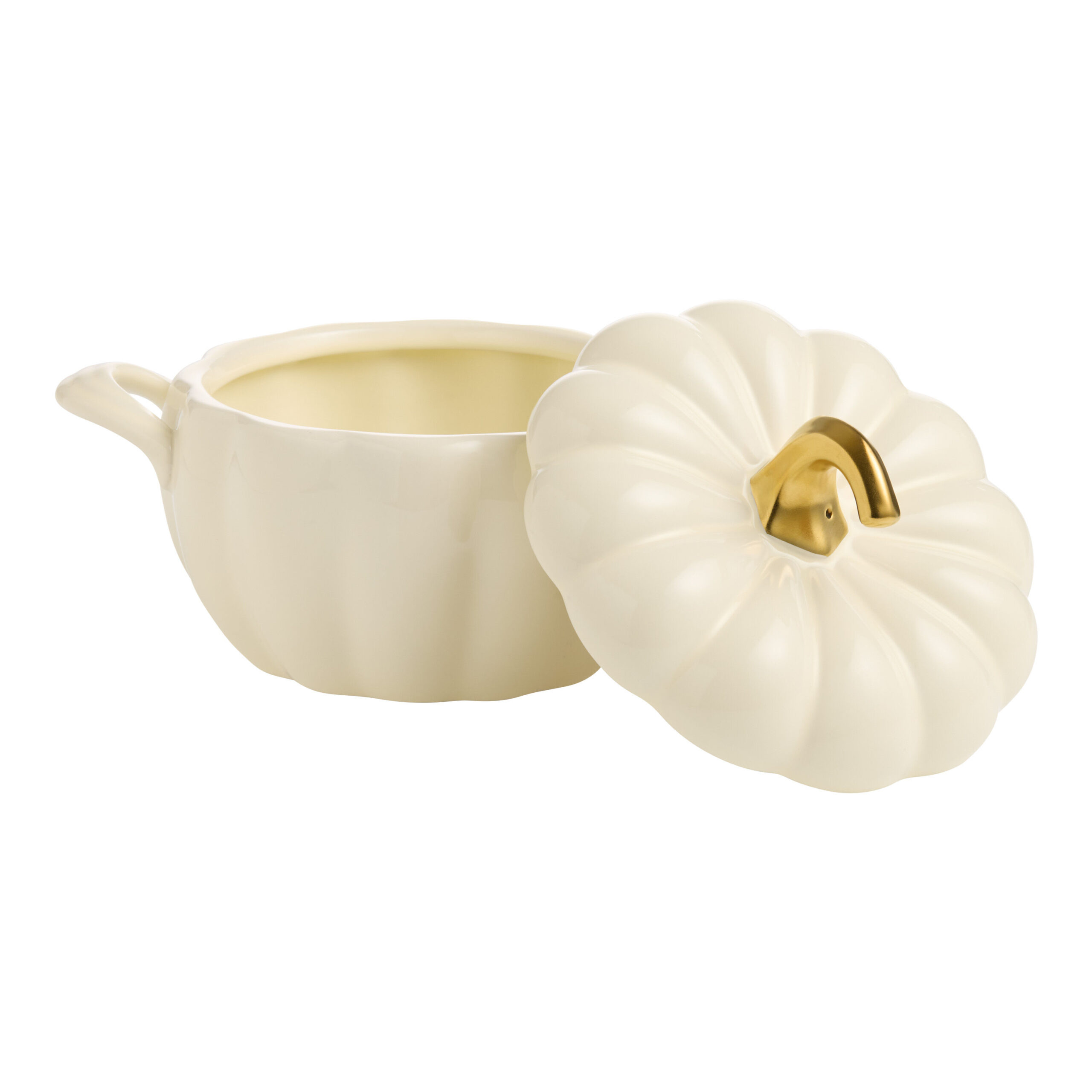 Round Off White Ceramic Pumpkin Figural Baking Dish with Lid