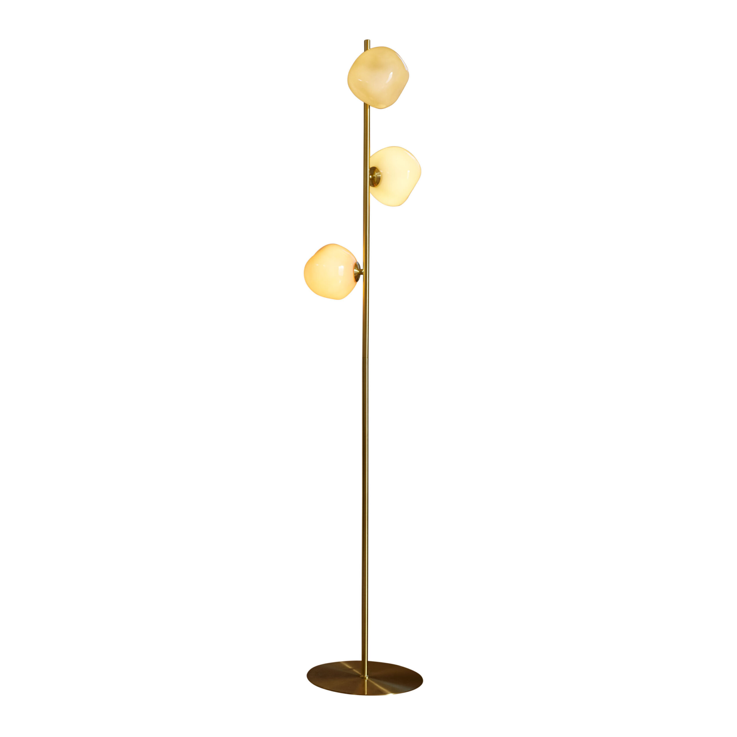 Tricolor Blown Glass Orb and Brass 3 Light LED Floor Lamp
